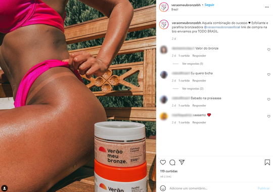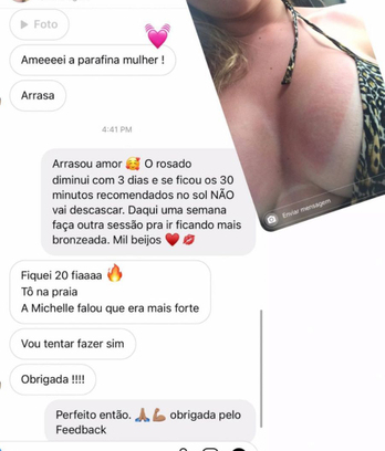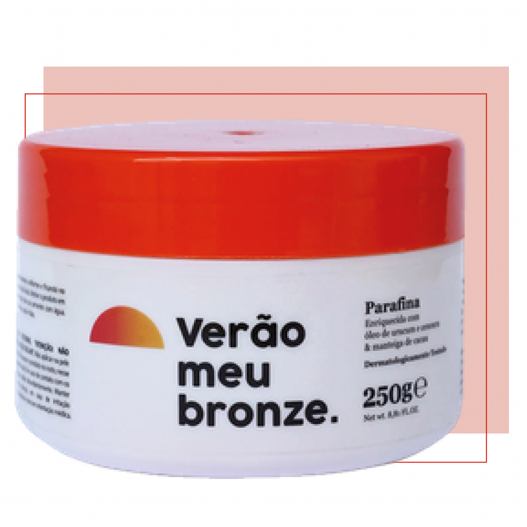 Desenvolvida para bronzear em casa ou na praia, com produtos naturais que garantem bronzeamento iluminado, a parafina Verão meu bronze tem resultado imediato. Na primeira aplicação e exposição ao sol, você já fica com um bronzeado perfeito e não mancha o biquíni.